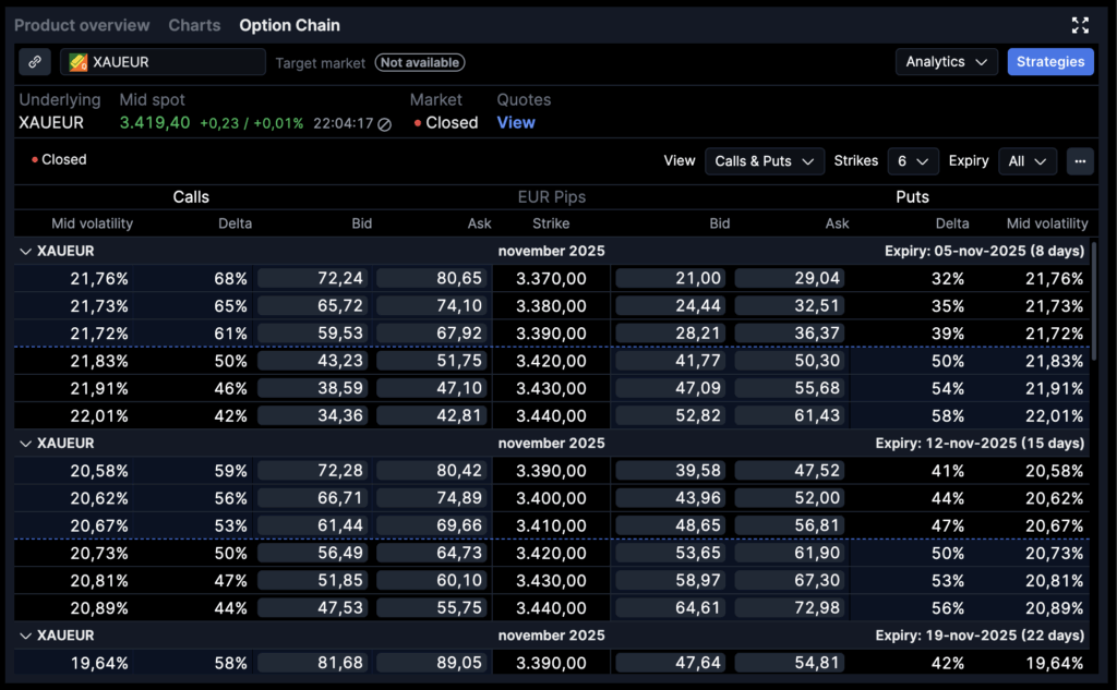A little over a week ago, I wrote about taking a position in a 3,600 XAU/EUR put — built on a simple thesis: gold had run too far, too fast, while volatility wasn’t properly reflecting the asymmetric downside risk.
